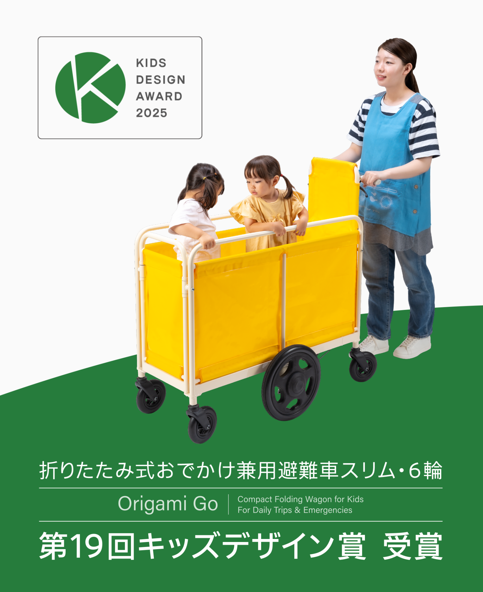 「折りたたみ式おでかけ兼用避難車スリム・6輪」が「KIDS DESIGN AWARD 2025」にて受賞いたしました。