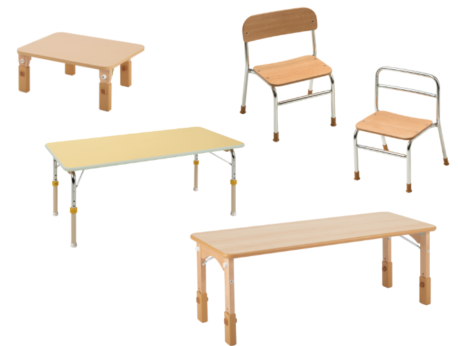 学年が違っても高さを変えるだけで同じテーブルを共有できるため、こどもの人数によりクラス編成が年ごとに変更になったとしても、買い増しすることなく対応できるので経済的なテーブルです。