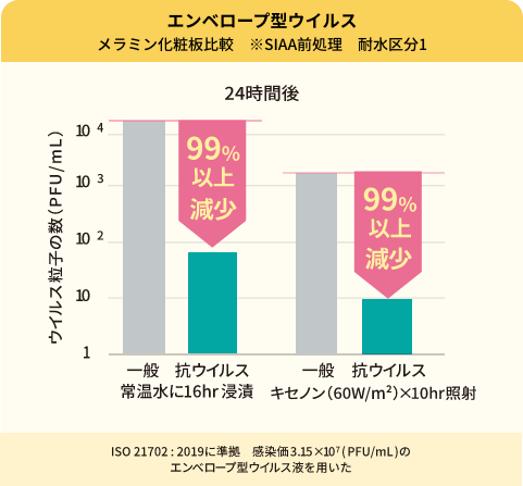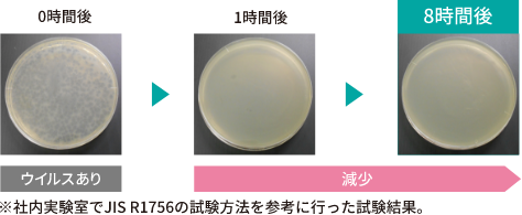 本製品は表面に付着した特定のウイルスの数を減少させますが、感染予防を保証するものではありません。また、抗ウイルス加工は病気の治療や予防を目的とするものではありません。