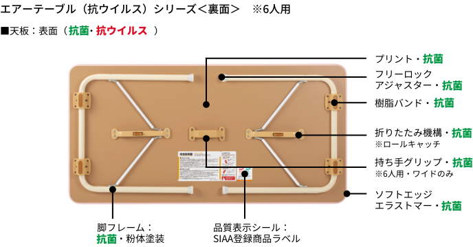 | 持ち手グリップ | 抗菌・ポリエチレン( ※6人用・ワイドのみ ) |