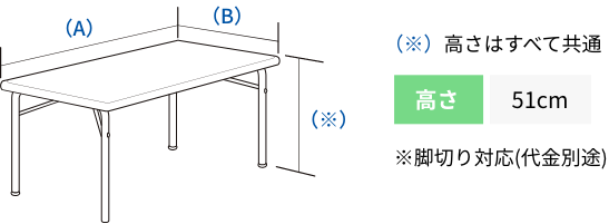 | 使用人数 | カラータイプ | 製品コード | 天板サイズ(A)×(B) | 重量 |