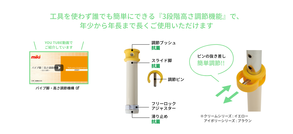 | 高さ調整パーツ | 抗菌・ポリプロピレン( イエロー・ブラウン ) | |
