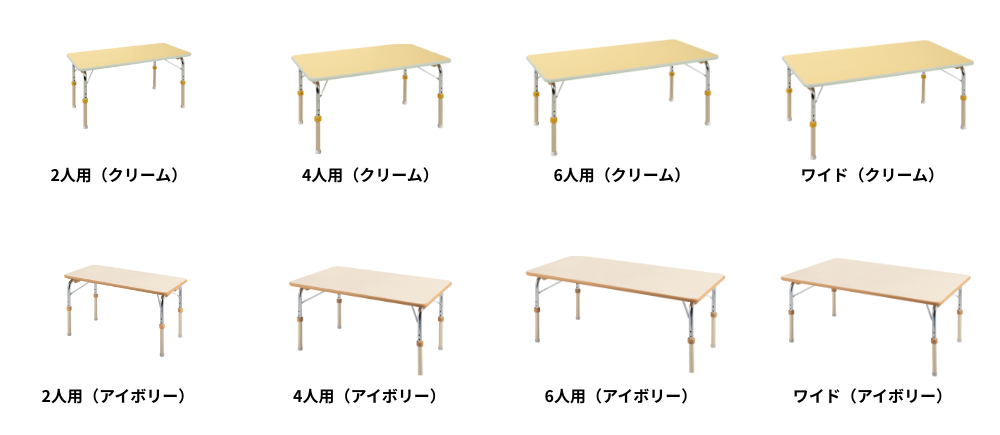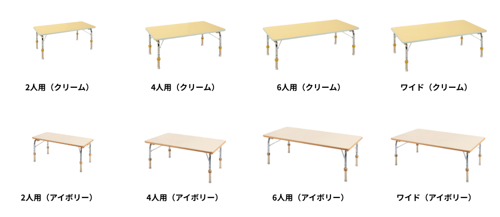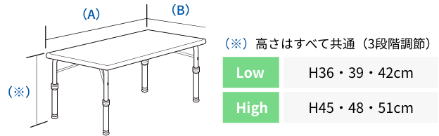 | 使用人数 | カラータイプ | 高さタイプ | 製品コード | 天板サイズ(A)×(B) | 重量 |