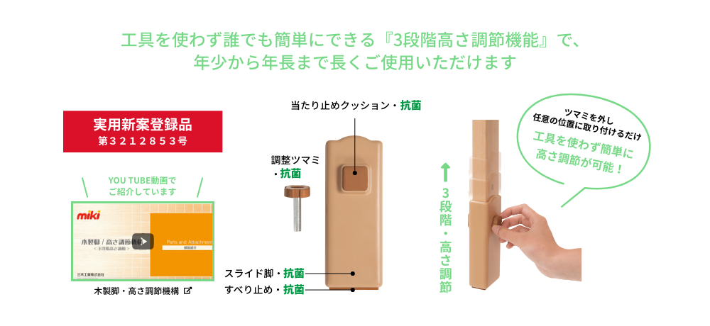 | 脚 | ブナ材 ( 抗菌・ウレタン塗装 ) | |
