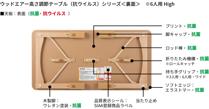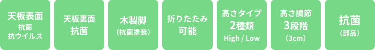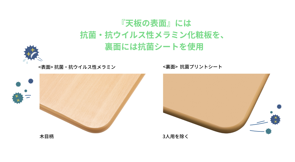 | 材質 | 天板 | 表面 : 抗菌・抗ウイルス性メラミン化粧板 ( 木目柄 ) 裏面 : 抗菌プリント |