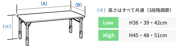 | 使用人数 | 高さタイプ | 製品コード | 天板サイズ ( A )×( B ) | 重量 |